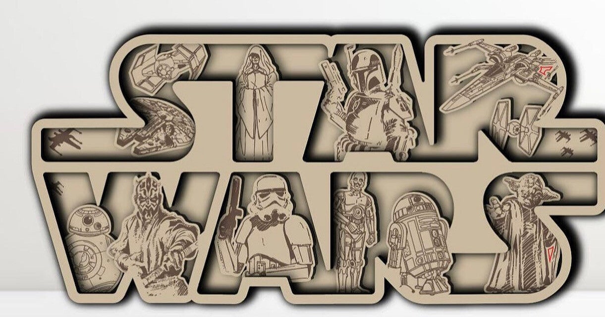 Laser cut and engraved Star Wars decor. 7 inches tall and 15 inches long.